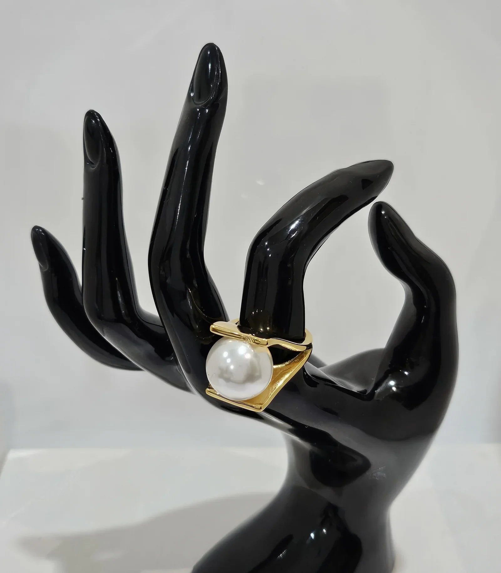 This gold and pearl statement ring is the ultimate piece for those who love modern sophistication with a touch of classic glamour.